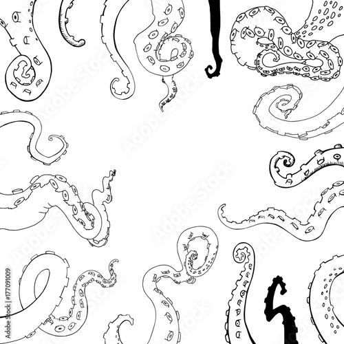Vector Hand Draw Line Work With Octopus Tentacles In Black