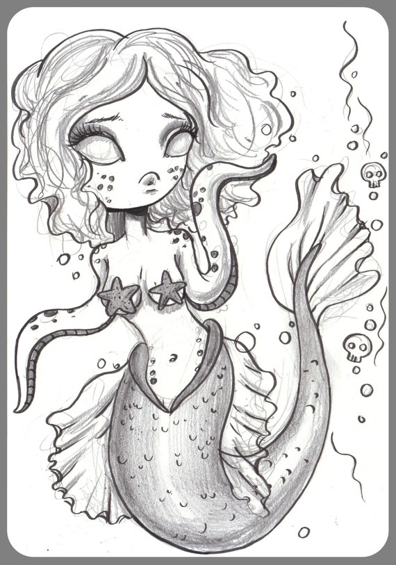 Day 228 Mermaid Girl Tentacles And Starfish Original Sketch A Day Drawing 5 5 X 8 5