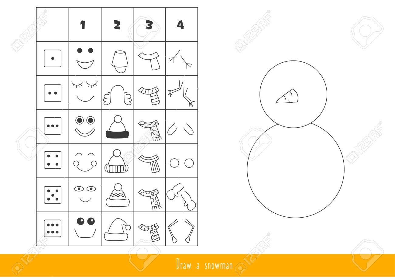 Image Of Game For Kids With Dice Roll The Dice And Draw A Snowman