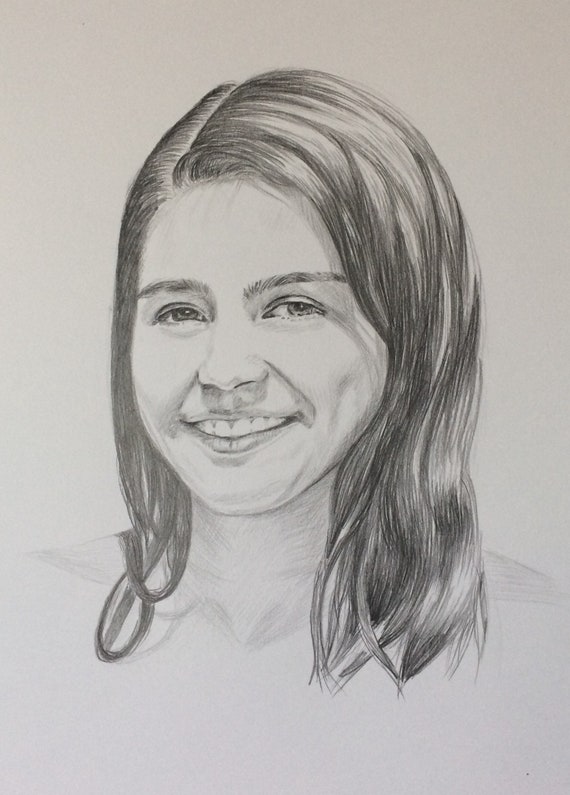 Image Of Custom Portrait Pencil Drawing From Photograph Hand Drawn Black White Sketch