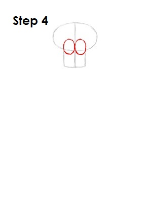 Inside the shape of squidwards head and on either side of the vertical construction line draw two small ovals next to each other as guides for his eyes.