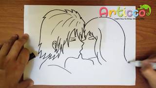 Image Of How To Draw Romantic Kisses Between Two Lovers Step By